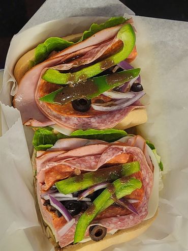 Turkey, provolone lettuce, tomatoes, pickles, onions, peppers, olives, balsamic vinaigrette